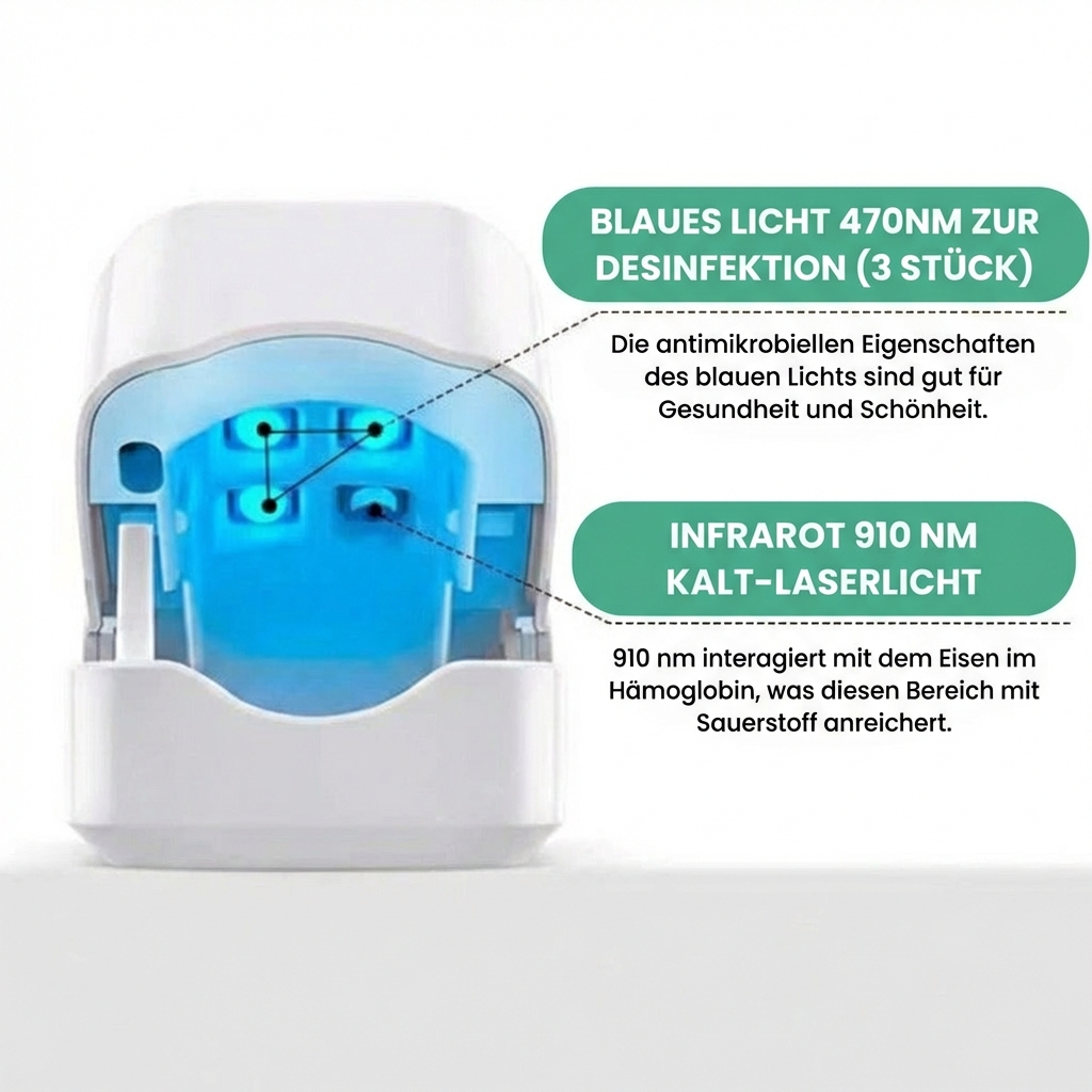 Dank seiner Blaulicht-Technologie bietet dieses innovative Gerät eine natürliche und schnelle Lösung, um Nagelpilz zu bekämpfen – und dabei Ihren Körper zu schonen.